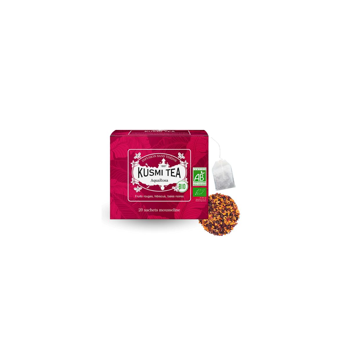 Son goût prononcé pour les arômes puissants refuse de choisir entre fruits et fleurs… alors AquaRosa de chez KUSMI TEA a décidé de réunir les deux. Une infusion bio audacieuse, généreuse et intensément aromatique.