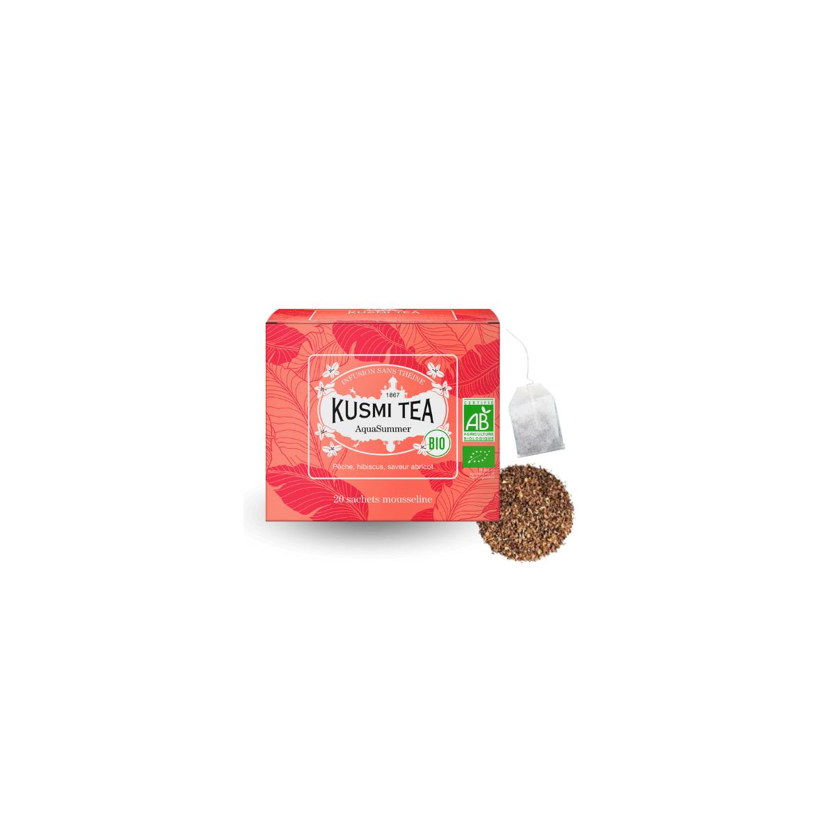 Chaud ou glacé, AquaSummer de KUSMI TEA est une tisane bio sans théine qui vous offre un festival fruité et rafraîchissant à tout moment. Laissez-vous emporter par ce mélange gourmand et léger, qui capture l’essence de l’été au fil des saisons.