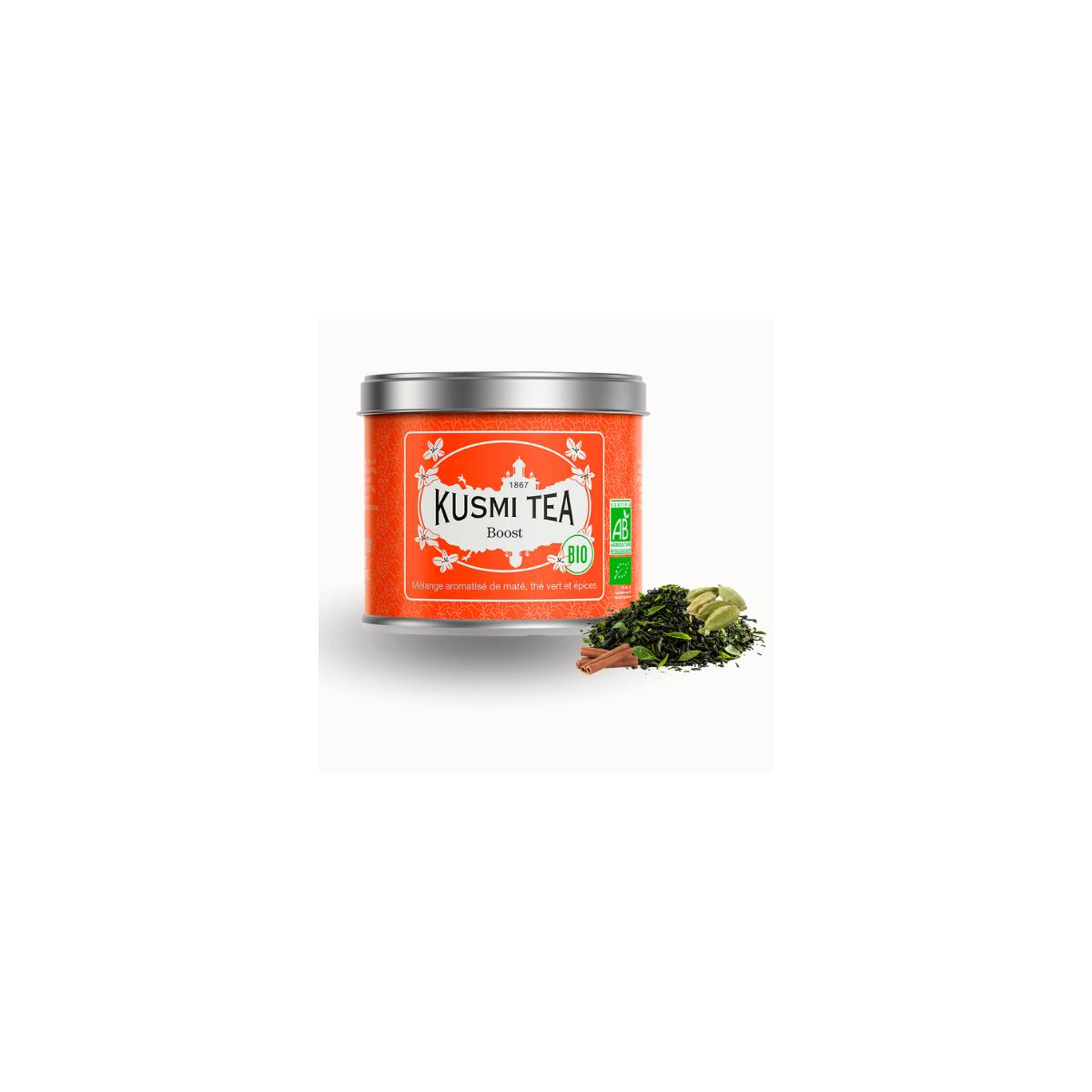 Boost, thé vert, maté et épices (cannelle, cardamome, gingembre) pour une infusion énergisante et réconfortante.
