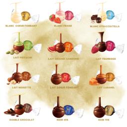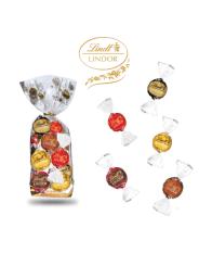 Sachet de 10 chocolats Lindor, un assortiment avec noir 70 %, lait Noisette, lait cœur fondant, double chocolat et blanc Cœur fondant.