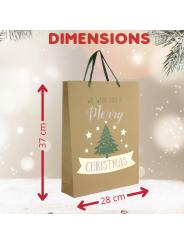 Sac en papier 28x37 cm avec anses en tissu, détails du décor métallisés.