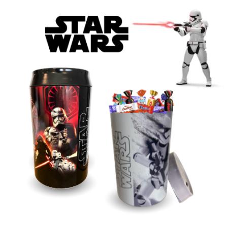 Tirelire en métal 18 cm garnie de 60 chocolats multi-variétés : Mars, Snickers, Twix, Bounty, Kinder Schokobons, Kinder Mini-Bueno, Daim, Milka nature..