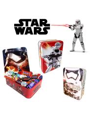 Petite boite métal 13x9 cm garnie de 20 chocolats multi-variétés : Mars, Snickers, Twix, Bounty, Kinder Schokobons, Kinder Mini-Bueno, Daim, Milka nature..
